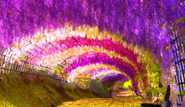 Ubicado en la ciudad de Kitakyushu, es el hogar de 150 tipos de plantas glicinias. La principal atracción del jardín es el túnel de Wisteria, porque permite a los visitantes caminar bajo un manto de colores que parece más un sueño que una realidad.